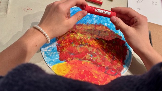 Anschließend besuchten die Klassen das Museum Barberini, wo sie eine Führung durch die impressionistische Gemäldeausstellung erhielten. Die Teilnehmenden wurden in zwei Gruppenaufgeteilt und durch Museumspädagogen angeleitet, Skizzen der Gemälde mit Bleistift zu zeichnen,die später im Atelier farbig gestaltet wurden, um die Malweise des Impressionismus praktischanzuwenden. Danach gab es noch etwas Freizeit in Potsdam, trotz Regen und Hagel. Einige kauften sich etwas Warmes zum Essen und die anderen erkundeten die Stadt.